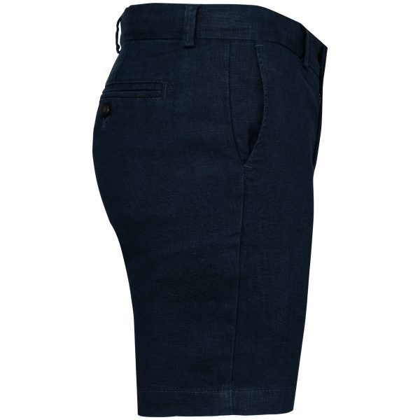 Acabamento interno do cós com faixa inglesa azul marinho contrastante.