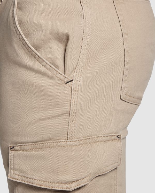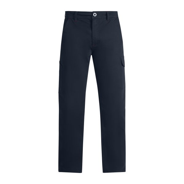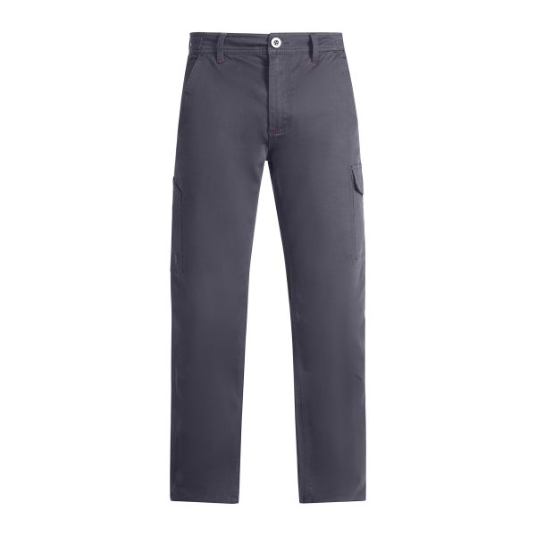 • Bolso cargo na perna esquerda com aba e fecho de velcro e bolso alongado para ferramentas na perna direita.
