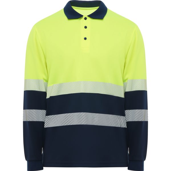 Polo técnico de manga comprida e alta visibilidade.
