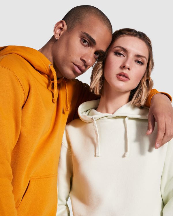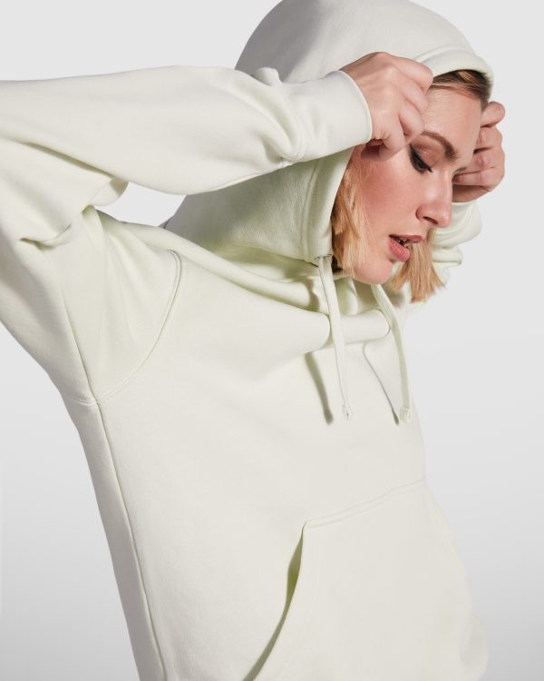 Sweatshirt com capuz, bolso canguru e cordão ajustável.