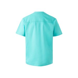 Túnica cirúrgica de manga curta com cintura ligeiramente ajustada.